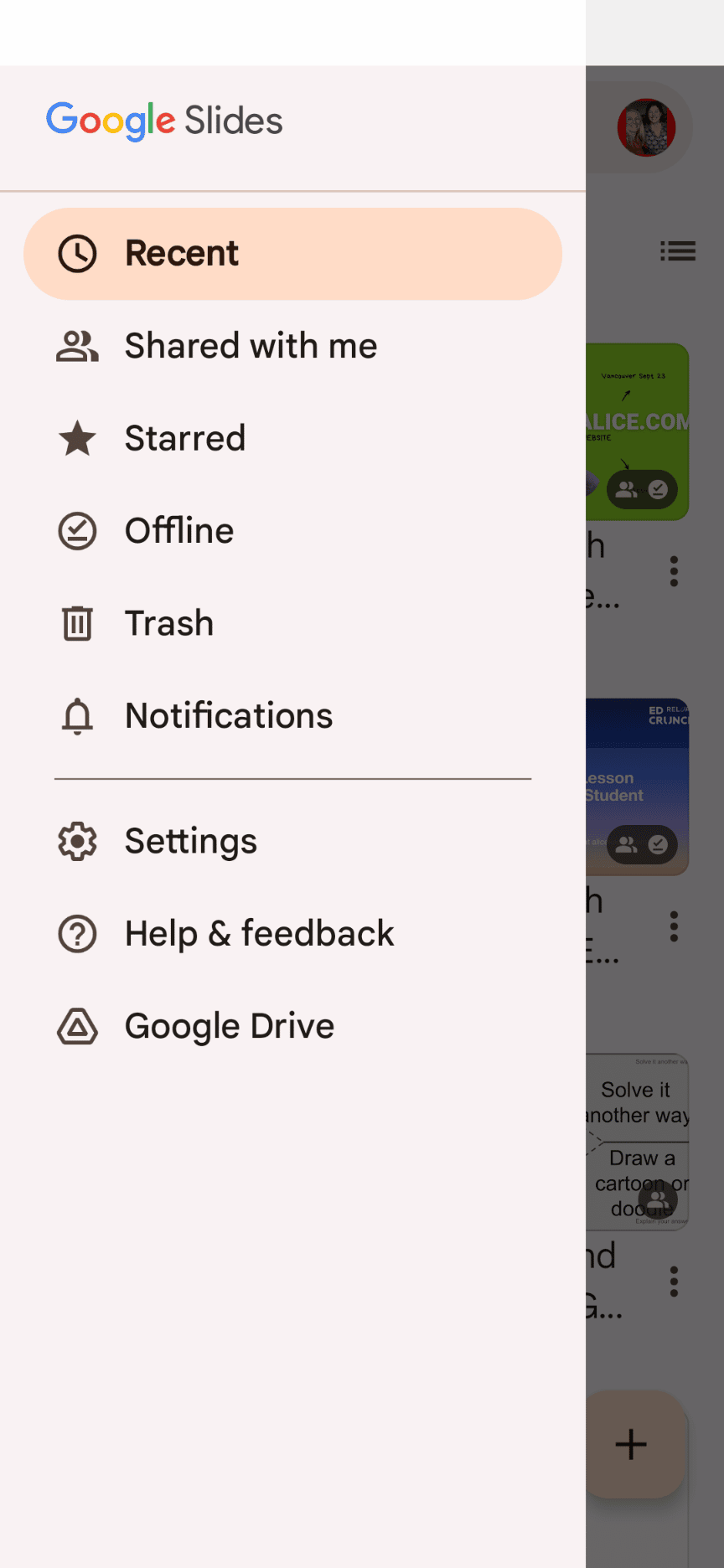 side rail for 5 Tips for Mobile Google Slides shows recent shared with me starred offline trash and notifications