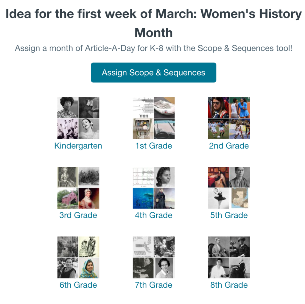 Navigate to the Article-A-Day section under the content tab to browse the scope and sequence for your grade level. You can filter by grade and then select a theme that aligns with your current unit or a monthly celebration. When you select a month’s worth of articles, the platform automatically staggers the start dates for you.