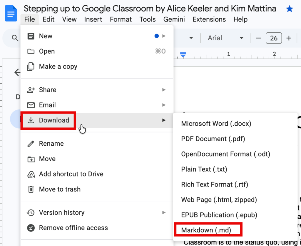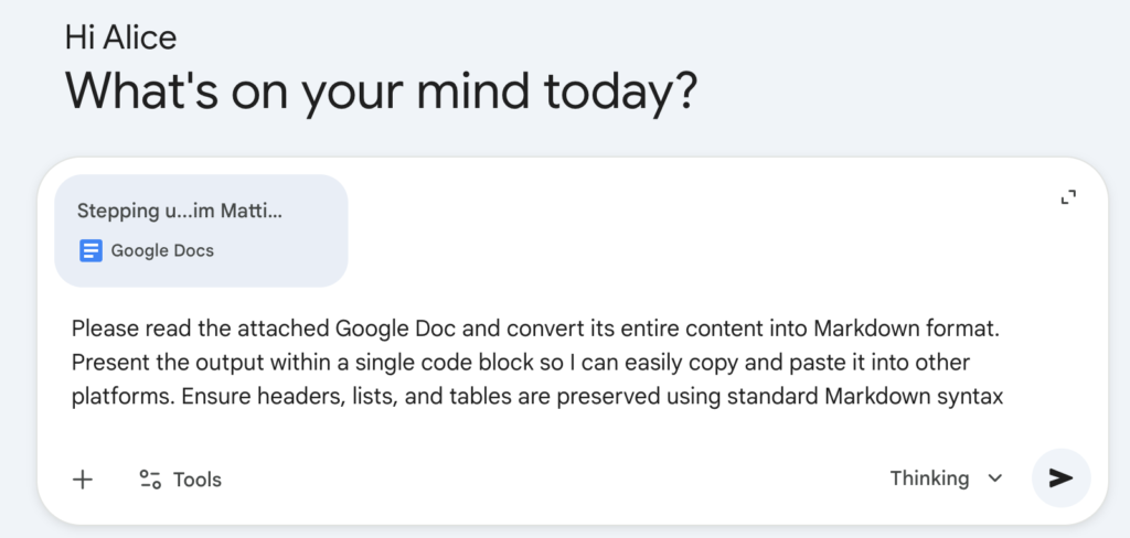 Using Gemini to Export Google Docs to Markdown
